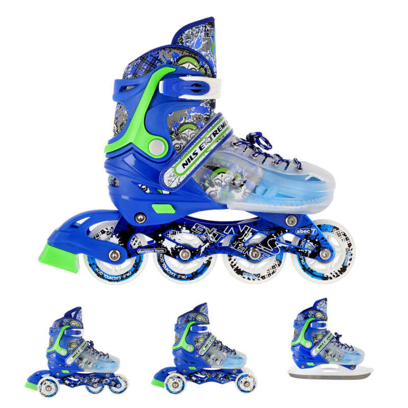 NH18331 BLAU 4-IN-1 GRÖßE S (31-34) INLINER MIT DER AUSTAUSCHBAREN EISHOCKEY-KUFE NILS EXTREME