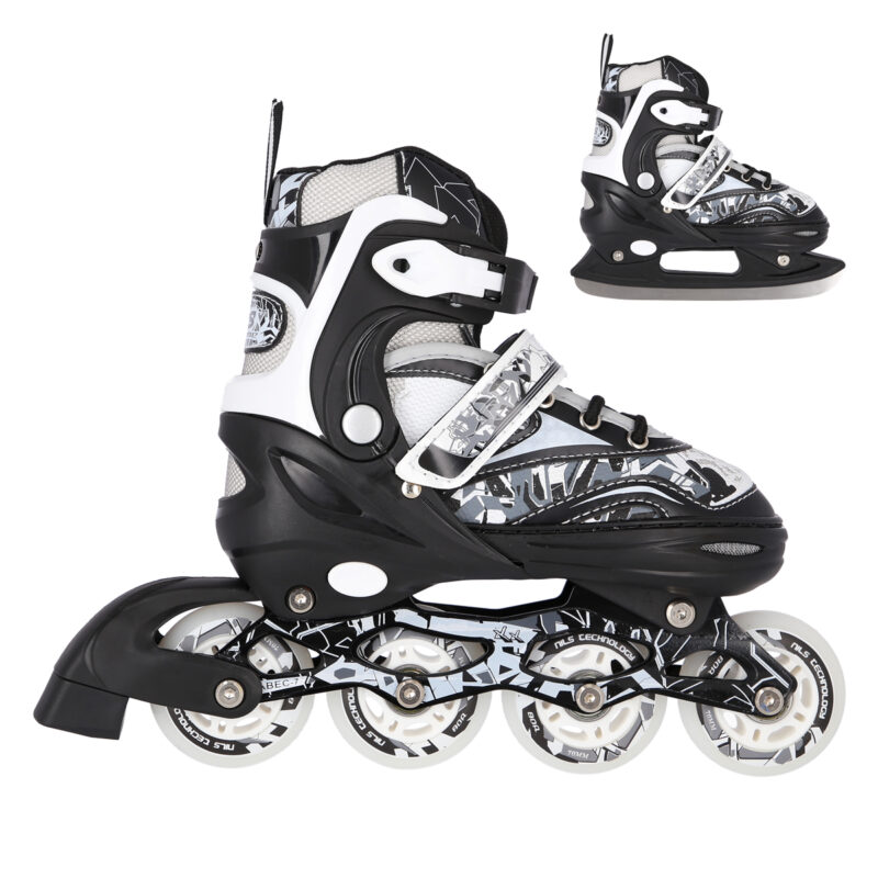 NH10905 4-IN-1 SCHWARZ LED GRÖßE M(35-38) INLINER MIT DER AUSTAUSCHBAREN HOCKEY-KUFE NILS EXTREME