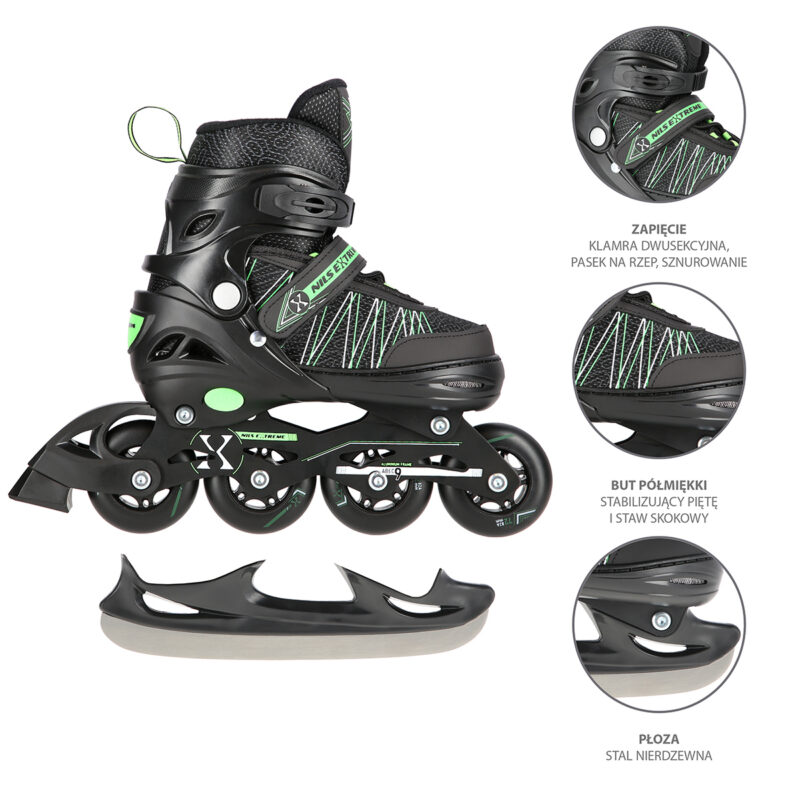 NH18366A 2-IN-1 BLAU-GRÜN GRÖßE S(31-34) INLINER MIT DER AUSTAUSCHBAREN HOCKEY-KUFE NILS EXTREME
