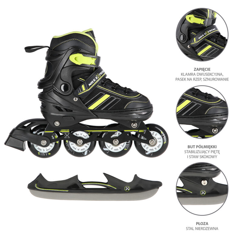 NH10927 A 2-IN-1 SCHWARZ GRÖßE S (31-34) INLINER MIT DER AUSTAUSCHBAREN EISHOCKEY-KUFE NILS EXTREME