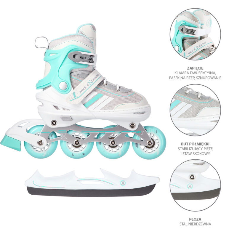 NH11912A 2-IN-1 WEIß-MINTGRÜN GRÖßE S(31-34) INLINER MIT DER AUSTAUSCHBAREN HOCKEY-KUFE NILS EXTREME