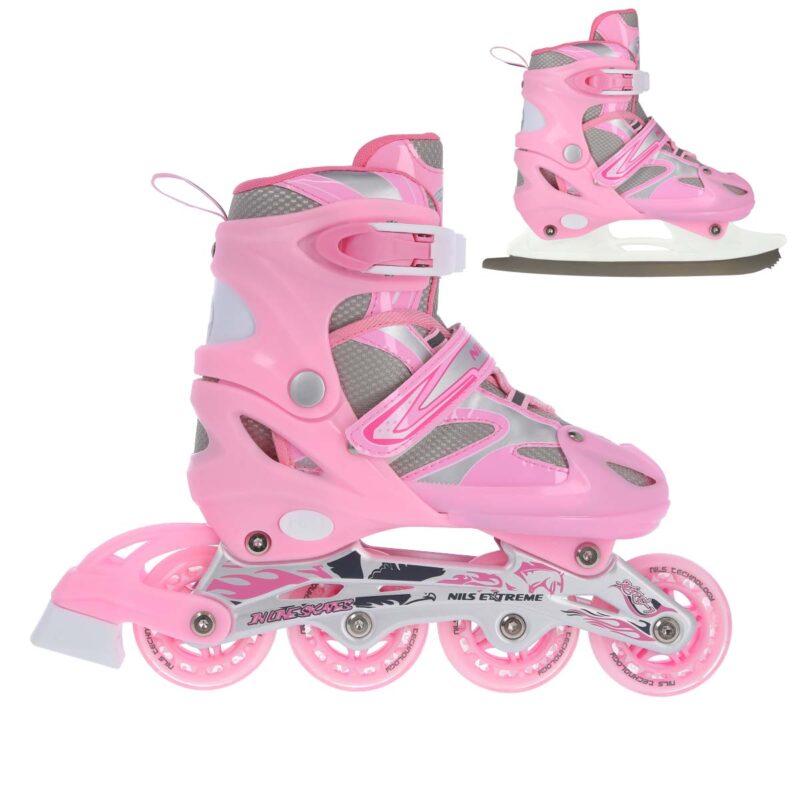 NH18192 4-IN-1 ROSA GRÖßE S (29-33) INLINER MIT DER AUSTAUSCHBAREN EISKUNSTLAUF-KUFE NILS EXTREME