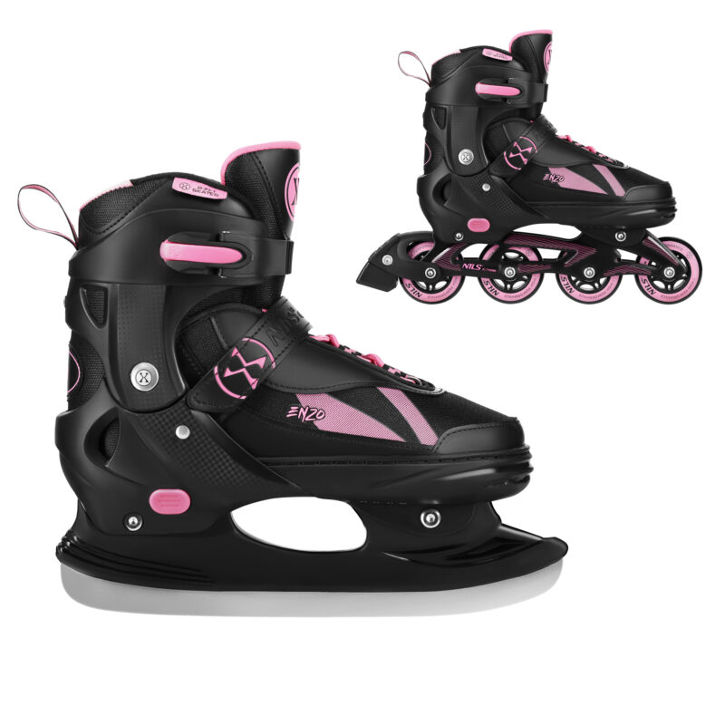 NH382 INLINE-SKATES 2-IN-1 ENZO ROSA GR. S (32-35) MIT AUSTAUSCHBAREM HOCKEYKUFEN NILS EXTREME