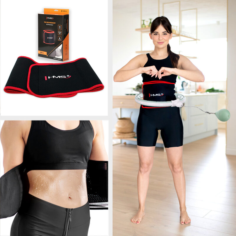 SET HHW06 HULA-HOOP-REIFEN BLACK MIT MASSAGENOPPEN UND ZÄHLER HMS + SLIMMING-GURT BR163 RED
