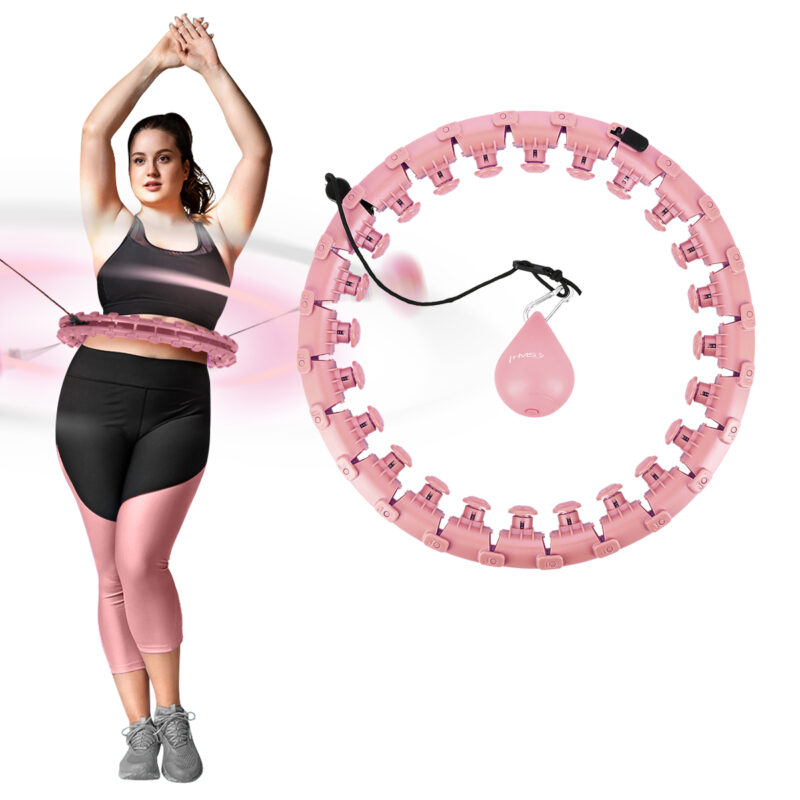 SET HHW06 HULA-HOOP-REIFEN PINK MIT MASSAGENOPPEN UND ZÄHLER HMS + SLIMMING-GURT BR163 BLACK