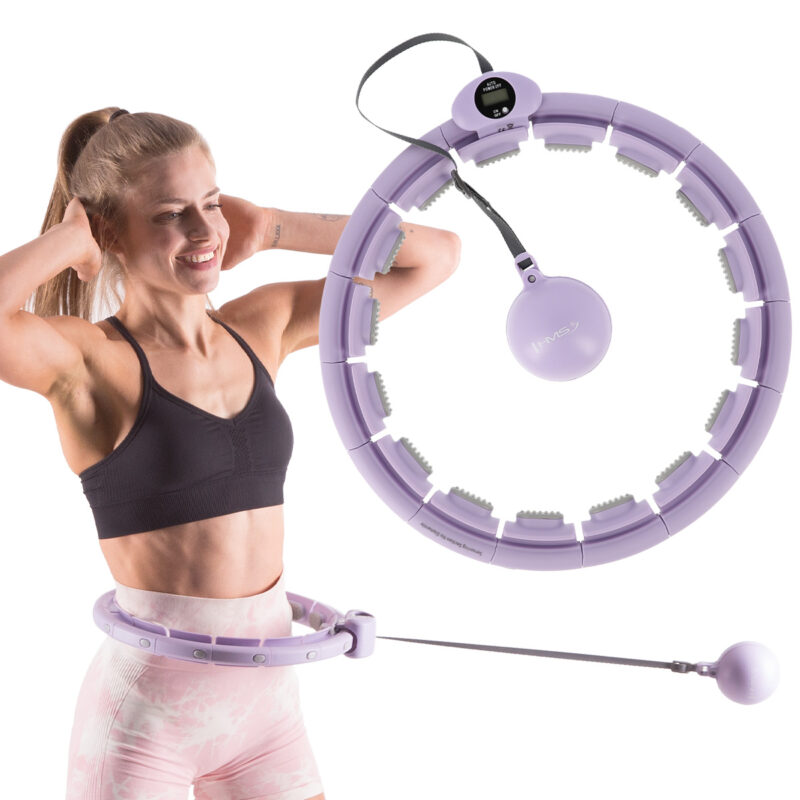 HHW09 VIOLETT HULA-HOOP-REIFEN MIT MASSAGEPUNKTEN UND SCHWERKRAFTBALL + ZÄHLER HMS