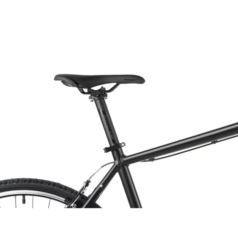 SHIMANO -Antrieb ausgestattet, der besonders sanfte Gangwechsel garantiert. 24 Gänge in einem 3×8-System werden sicherlich auch in schwierigerem Gelände ausreichen. Die Spezifikation wird durch Romet-Aluminiumkomponenten ergänzt.