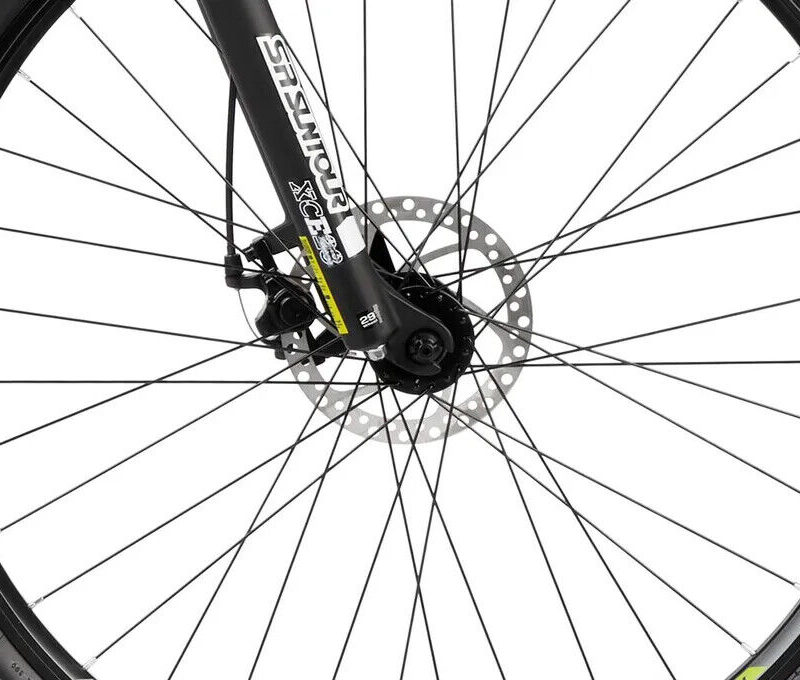 Bei einem vollwertigen Mountainbike, dem Rambler R9.1, haben wir uns auf bewährte und solide Komponenten konzentriert. Fahrkomfort unter verschiedenen Bedingungen wird durch 29-Zoll-Laufräder und den Suntour XCE-Frontstoßdämpfer gewährleistet.
