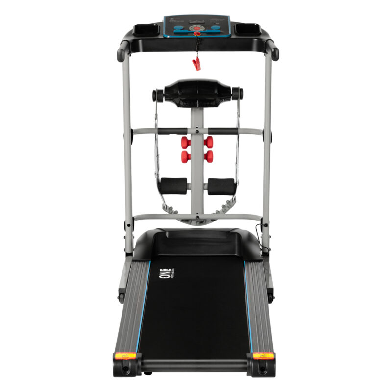 Im Set mit dem Laufband bekommen Sie das Massagegerät, mit dem Sie das Risiko der sogenannten “Muskelkater” reduzieren, weil Sie dadurch Ihre Muskeln perfekt entspannen. Außerdem beeinflusst diese Massage sehr gut das Kreislaufsystem und die Erholung. Spezielle Handgriffe an der Vorderseite des Laufbands ermöglichen es Ihnen, im Liegen Rumpfbeugen zu machen. Mit den Kurzhanteln und dem Gleichgewichtsboard, die im Set enthalten sind, können Sie die Übungen abwechslungsreich gestalten. Mit dem Laufband BE4540 ONE FITNESS können Sie den gesamten Körper trainieren.