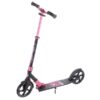 Der Lenker wurde mit Gummi-Griffen ausgestattet, die das sichere Greifen gewährleisten und keine Schürfwunden verursachen. Solche Lösung sorgt für Ihre stundenlange Freude beim Fahren. Die Verstellung des Lenkers ermöglicht es Ihnen, die Höhe des Lenkers an Ihre Körpergröße anzupassen. Der Roller HM205 hat zwei große Räder mit der Größe von 200 mm. Dies ermöglicht ein effizientes Steuern des Rollers und ein leichteres Überwinden von Unebenheiten. Die Lager der Klasse ABEC9 verbessern die Stabilität und garantieren eine reibungslose Fahrt. Die hintere Fußbremse sorgt für Ihre Sicherheit.