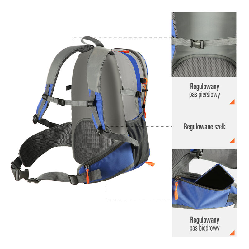 – Der Rucksack ist mit Hüft- und Brustgurt ausgestattet, der die Wirbelsäule entlastet und den Tragekomfort deutlich verbessert und das Auftreten von Rückenschmerzen reduziert. Zusätzlich ist das Modell BESSEGEN mit seitlichen Kompressionsriemen ausgestattet, mit denen Sie das Fassungsvermögen des Rucksacks verringern oder erhöhen können.