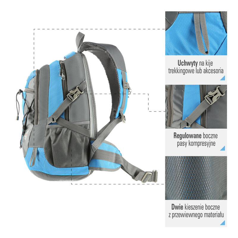 Der Rucksack ist mit Hüft- und Brustgurt ausgestattet, der die Wirbelsäule entlastet und den Tragekomfort deutlich verbessert und das Auftreten von Rückenschmerzen reduziert. Zusätzlich ist das Modell ABOVE mit seitlichen Kompressionsriemen ausgestattet, mit denen Sie das Fassungsvermögen des Rucksacks verringern oder erhöhen können.