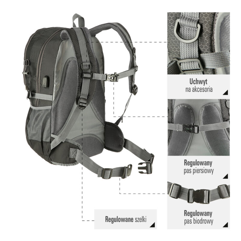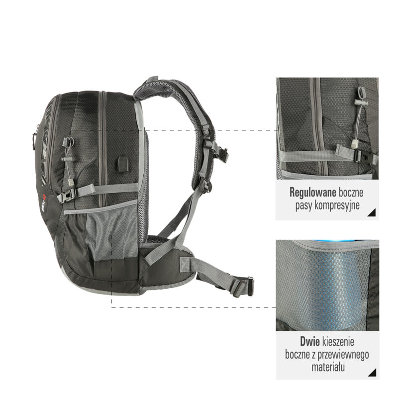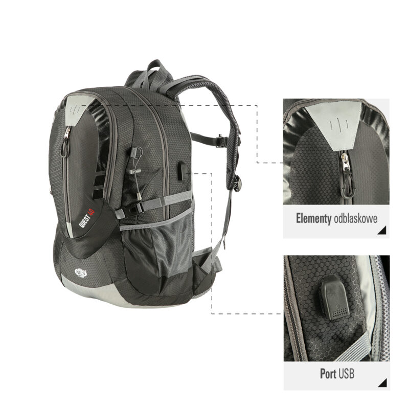 Der Rucksack ist mit Hüft- und Brustgurt ausgestattet, der die Wirbelsäule entlastet und den Tragekomfort deutlich verbessert und das Auftreten von Rückenschmerzen reduziert. Zusätzlich ist das Modell QUEST mit seitlichen Kompressionsriemen ausgestattet, mit denen Sie das Fassungsvermögen des Rucksacks verringern oder erhöhen können.