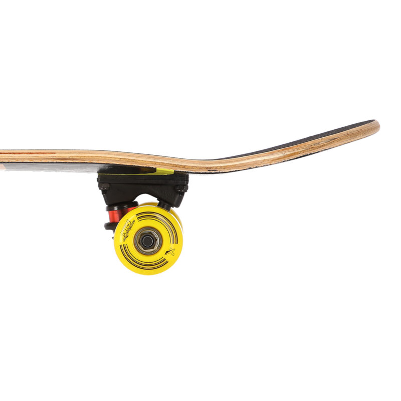 Das Skateboard besteht aus 9-schichtigem laminiertem Sperrholz. Der Stoff gewährleistet hohe Widerstandsfähigkeit samt der Elastizität. Sein Oberteil ist mit Schleifpapier (sog. Grip) bedeckt. Dies gibt Ihnen einen sicheren Stand.