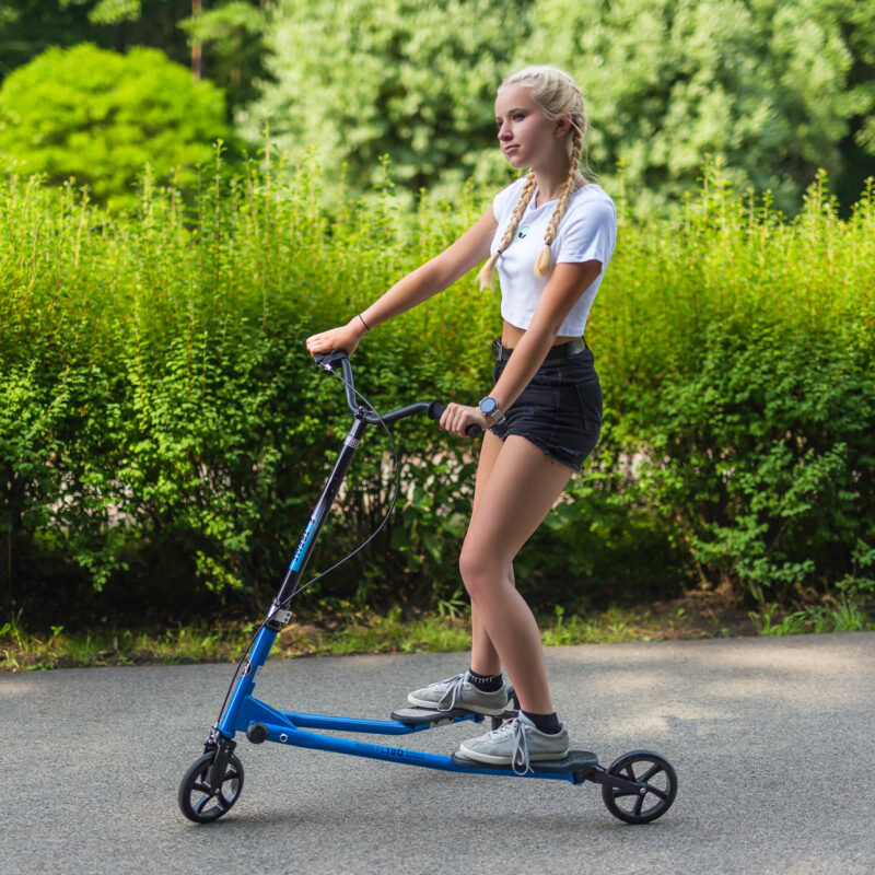 Der Roller FL180 Nils Extreme ist ein revolutionärer Roller des Typs: „Fliker”. Er richtet sich an Jugendliche und Erwachsene. Die einzigartige Konstruktion stützt sich auf drei Rollen, die die größere Stabilität gewährleisten. Im Vergleich mit klassischen Rollern hat Fliker die lenkbaren, hinteren Rollen. Daher ist es nicht notwendig, sich mit dem Fuß abzustoßen, sondern sich mit den Hüften auszubalancieren (wie beim Skifahren). Fliker bietet den Nutzern die Möglichkeit der ausgezeichneten Unterhaltung und darüber hinaus ist er schneller als ein klassischer Roller. Wenn Sie mit dem Fliker fahren, entwickeln Sie den Gleichgewichtssinn und stärken die Muskulatur. Das kann auch ein Teil des Sommertrainings für Skifahrer sein.