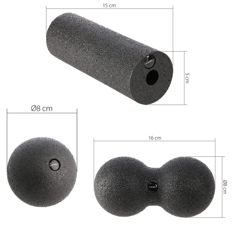 Der kleine Ball mit einem Durchmesser von 8 cm ist genau das Richtige für die Massage von Triggerpunkten und Bereichen der Faszienspannung. Der Doppelball der Marke HMS eignet sich perfekt für die Therapie tiefliegender Muskelgruppen oder schwer erreichbarer Körperregionen wie Nacken, Gesäß, Schultern und Brust. Mit der Minirolle können Sie Ihre Unterarme oder Füße entspannen.