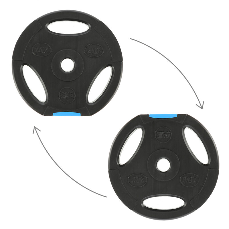 Die Langhantel mit austauschbaren Hantelscheiben gehört sowohl zu einem klassischen Element als auch zum Pflichtelement jedes Heim-Fitnessstudios. Daher darf GSP040 ONE FITNESS nicht fehlen. Die Füllung aus Zement und der hochwertige Kunststoff auf der äußeren Seite gewährleisten hohe Robustheit des Produkts. Die Federverschlüsse und der ideal angepasste Durchmesser der Bohrung erleichtern einen schnellen Gewichtswechsel und zugleich sorgen für eine ideale und sichere Position auf der Langhantelstange. Im Lieferumfang finden Sie eine Langhantel, zwei Verschlüsse und insgesamt 8 Hantelscheiben. Dank den Griffen können die Hantelscheiben auch als Kurzhanteln benutzt werden. Das Gesamtgewicht des Sets beträgt 42 kg. Das Produkt ist sowohl für Fortgeschrittene als auch für Anfänger bestimmt. Beginnen Sie noch heute mit Trainings. GSP040 ONE FITNESS ist ein ideales Produkt für Ihr Heim-Fitnessstudio.