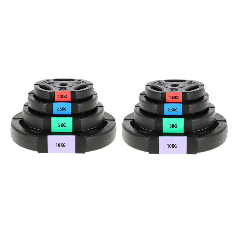 - Anzahl der Hantelscheiben im Set: 2x 1.25 kg / 2x 2.5 kg / 2x 5 kg / 2x 10 kg