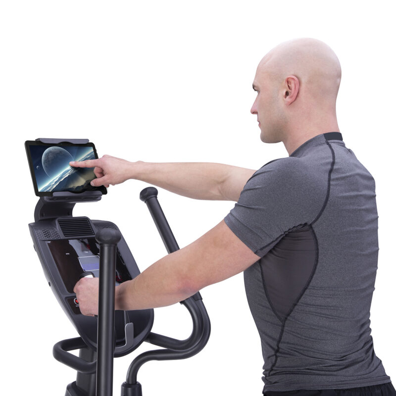 Der Crosstrainer hat einen modernen Computer mit dem LCD-Bildschirm. Die Benutzung des Computers ist sehr intuitiv und einfach. H5815 hat insgesamt 22 integrierte Programme. Jeder Nutzer, unabhängig von seiner Leistungsfähigkeit, findet ein richtiges Programm für sich. Der Computer zählt und zeigt alle wichtigen Trainingsparameter an. Außerdem ist der Crosstrainer mit einer Halterung für ein mobiles Gerät ausgestattet. Daher kann der Nutzer z. B. sein Tablet während des Trainings benutzen.