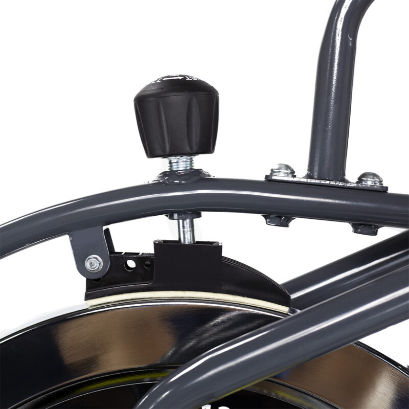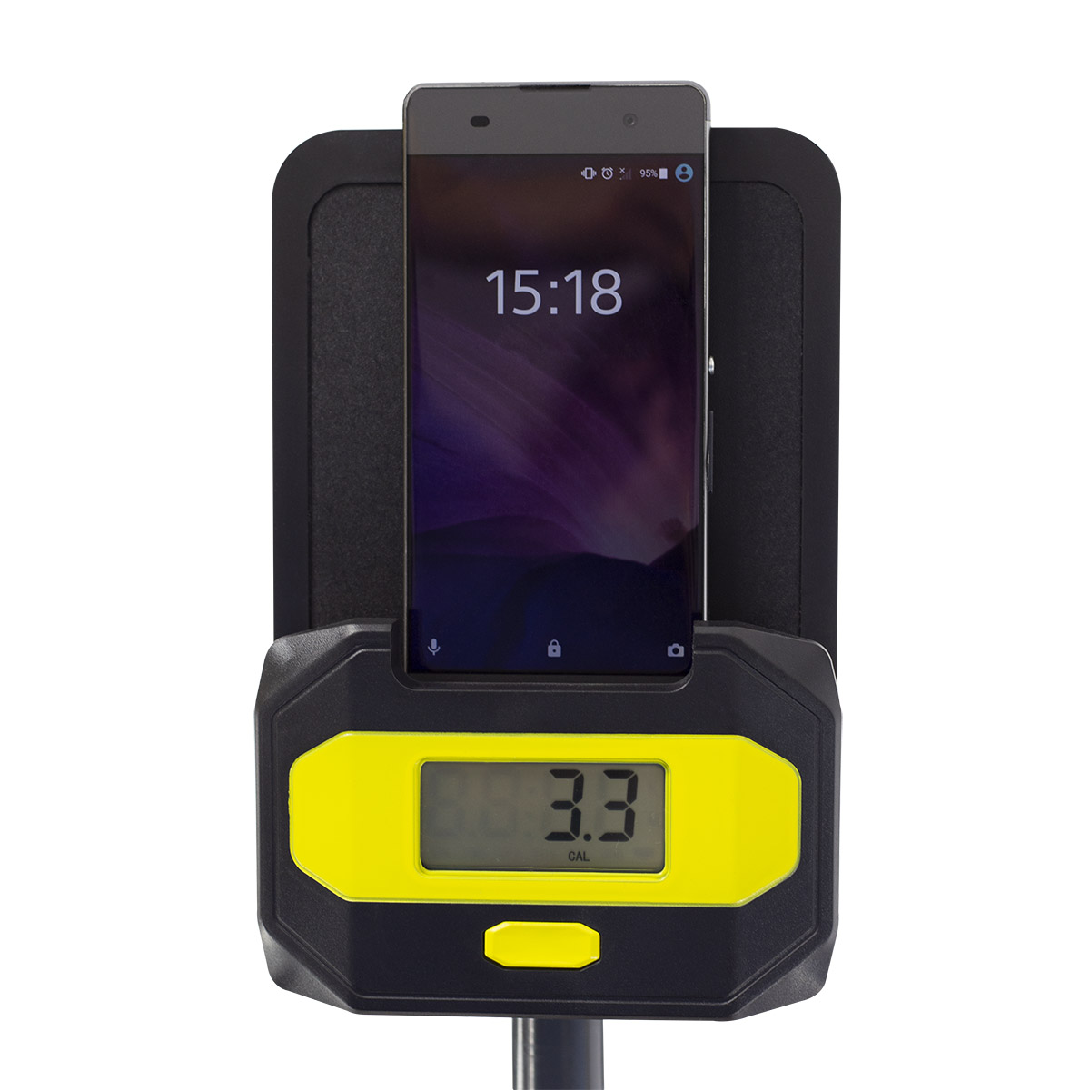 Das Widerstandssystem arbeitet auf der Grundlage eines Druckmechanismus, indem einen mit Filz beschichteten Bremsklotz gedrückt wird. Über den Drehknopf lässt sich der Widerstand einstellen. Die Übungen sind leise und damit stört man niemanden in seiner Umgebung. Auf dem Bildschirm des Computers werden die wichtigsten Informationen angezeigt, die das Training betreffen. Das ist vor allem Puls, der mithilfe der Handpuls-Sensoren an Handläufen gemessen werden kann.