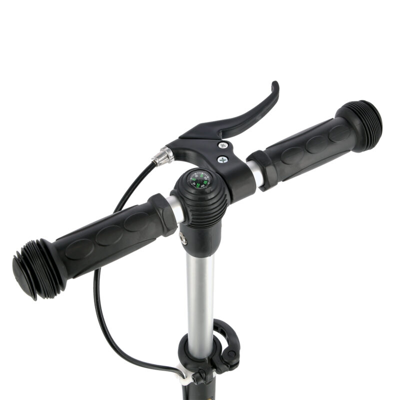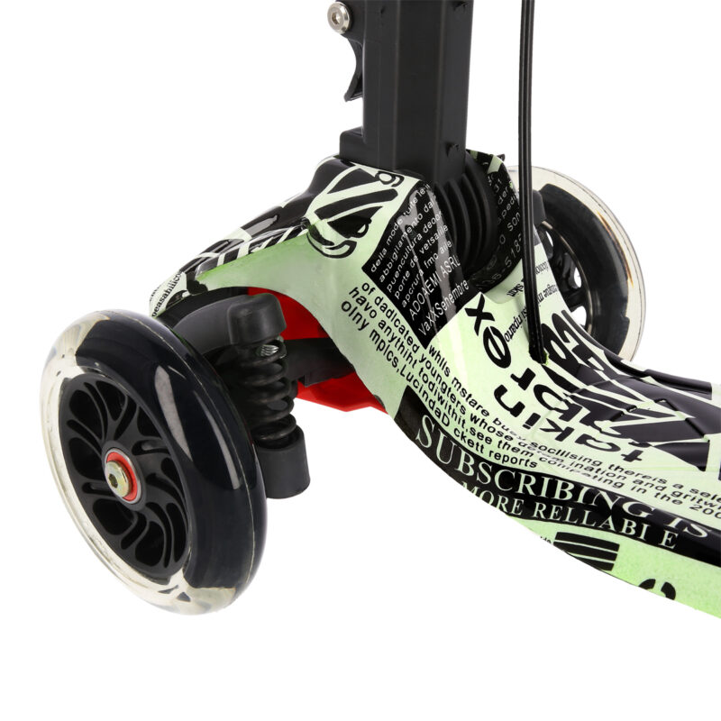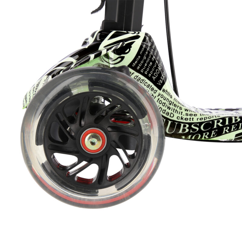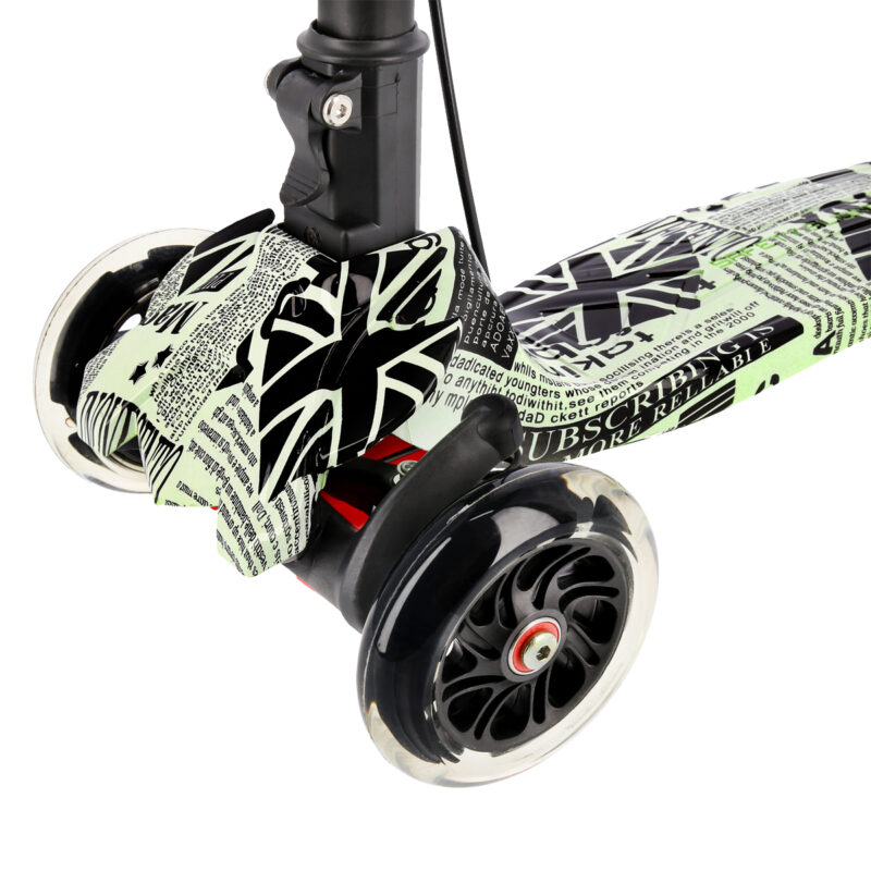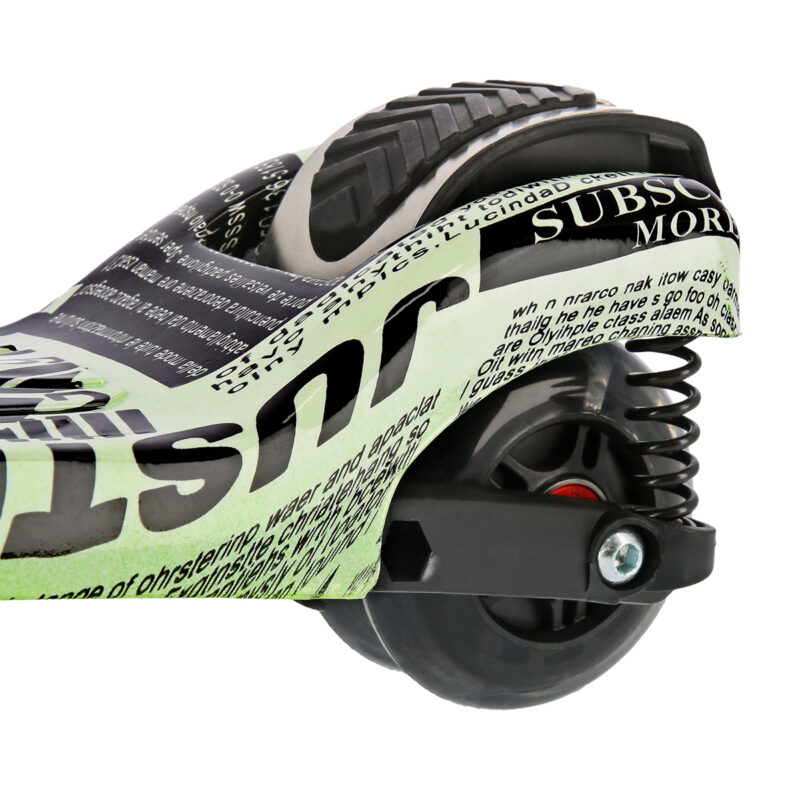 HLB 11 ist ein praktischer Roller, der mit vier Rädern ausgestattet ist. Zwei Räder befinden sich im breiten Abstand im vorderen Teil des Rollers. Zwei hintere Räder liegen hingegen dicht zusammen. Die vorderen Räder lassen sich problemlos abbiegen und die hinteren Räder absorbieren Vibrationen, die durch das Fahren auf holprigen Wegen entstehen. Das ist ein ideales Produkt nicht nur für die jüngsten Benutzer, sondern auch für Jugendliche. Diese vier Räder erleichtern es, das Scooter-Fahren in den Griff zu bekommen und sich sicher dabei zu fühlen. Dadurch dass jedes Rad über sein eigenes Dämpfungssystem verfügt, das auf die Wirkung der unabhängigen Federn beruht, werden während des Fahrens nicht nur die durch die Holprigkeiten auf asphaltierten Straßen verursachten Mikro-Stöße reduziert, sondern auch die größeren, die durch die Pflasterschäden und -mängel entstehen. Trotz seiner geringen Größe bietet der Roller eine Fahrweise, die für größere Modelle der Roller typisch ist. HLB 11 verfügt über ein intuitives Steuerungssystem. Der Lenker ermöglicht es, das Gleichgewicht während der Benutzung zu halten. Die Steuerung verläuft durch Balancieren des Körpers und Neigung der Lenkstange in eine oder andere Richtung. Eine solche Lösung ist besonders gut für die jüngsten Liebhaber des Scooter-Fahrens. Mit dem verstellbaren Lenker lässt sich der Roller an die Körpergröße des Kindes problemlos anpassen. Dies ermöglich es, längere Zeit Spaß beim Scooter-Fahren zu haben. Handbremse und Fußbremse sorgen für Sicherheit. Die Lager der Klasse ABEC 5 und die zwei Stoßdämpfer, die jegliche Vibrationen reduzieren, gewährleisten hingegen einen hohen Komfort während des Fahrens. Ein weiterer Vorteil des Rollers HLB 11 sind seine leuchtenden Räder. Sie bieten den Kindern viel Spaß, machen aber auch den Benutzer sichtbarer. Eine zusätzliche Freude wird der in der Lenkstange montierte Kompass bereiten.