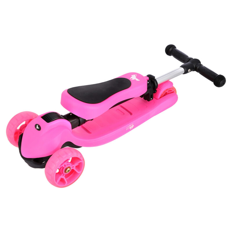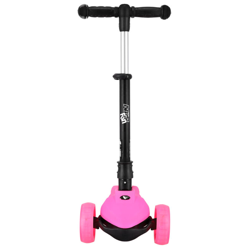 Das breite Hinterrad beeinflusst größere Stabilität während des Fahrens. Durch die verstellbare Lenkerstange können Sie den Roller leicht an Körpergröße Ihres Kindes anpassen. Sowohl die vorderen als die hinteren Räder haben eingebaute LED-Dioden, die viel Spaß den Kindern machen. Dadurch wird auch Ihr Kinder sichtbar während des Fahrens.