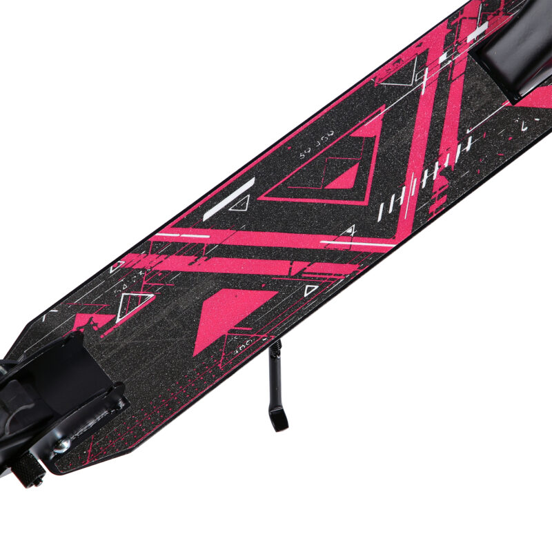 Die stählerne, rutschfeste Plattform bietet sicheren Halt für Ihre Füße, selbst bei intensivster Fahrt, und die Fußbremse erhöht die Sicherheit, indem sie volle Kontrolle über das Fahrzeug in jeder Situation ermöglicht.