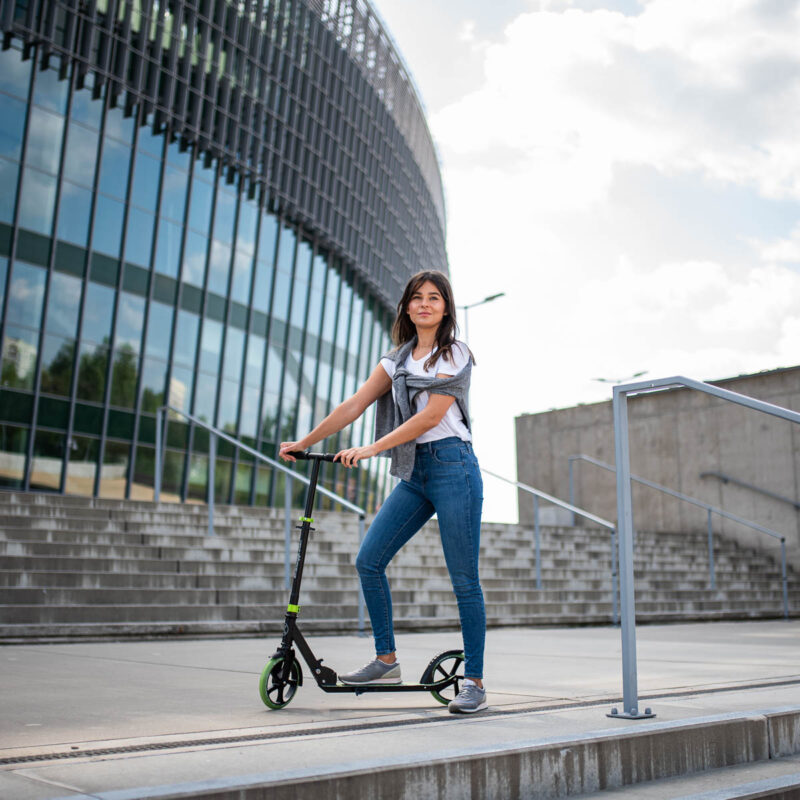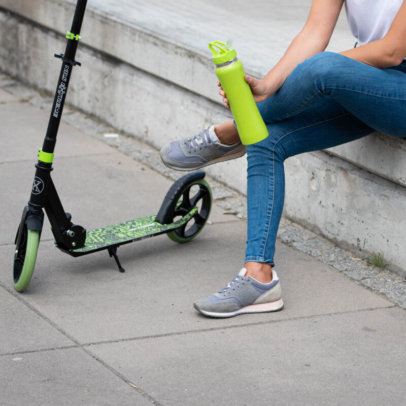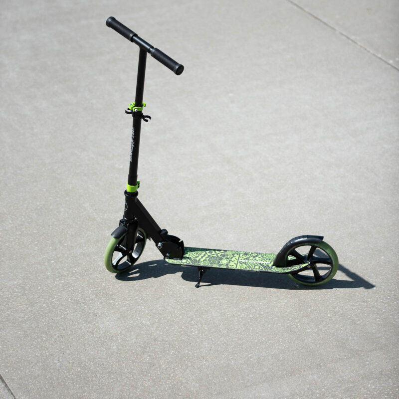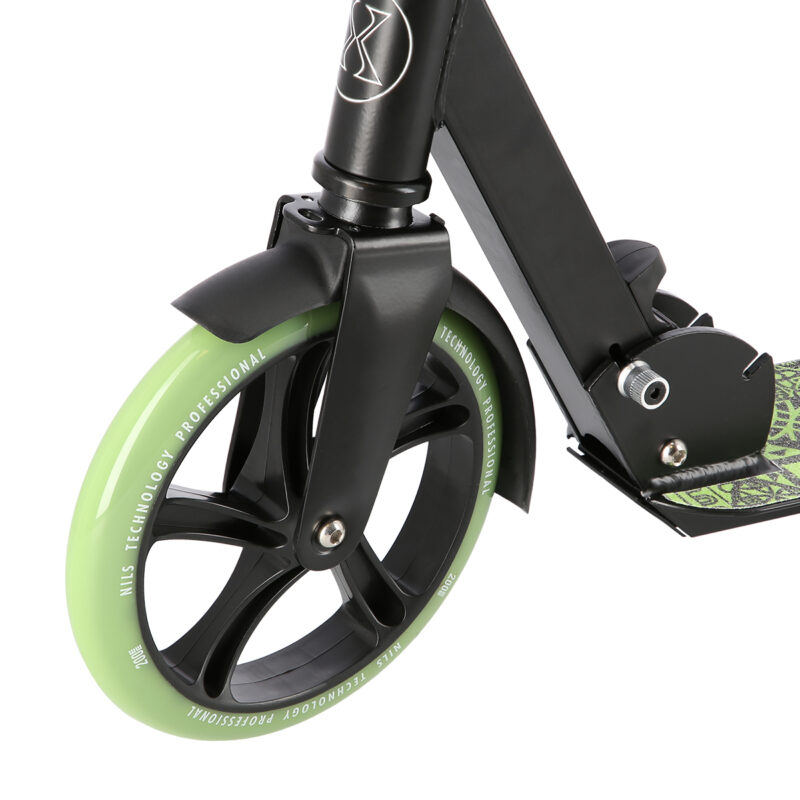 HM2002 hat die großen Räder (200 mm / 82A) und die hochwertigen Lager der Klasse ABEC7. Der Roller ist perfekt für Fahrten auf holprigen, asphaltierten Oberflächen sowie Waldwegen.