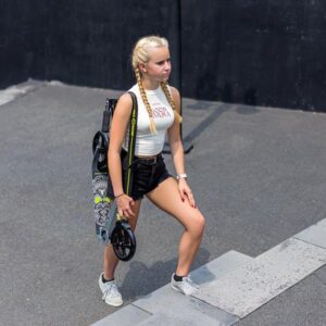 Der Roller HM210 Nils Extreme richtet sich an Kinder, Jugendliche und Erwachsene. Er wurde aus Aluminium hergestellt und ist dadurch sehr leicht und widerstandsfähig. Dies ermöglicht es Ihnen, diesen Roller lange Zeit zu benutzen. Mit dem geringen Gewicht wird der Transport sehr einfach. Außerdem verfügt der Roller über einen einfachen Klappmechanismus. Zusätzlich ist dieser Roller mit einem Tragegurt ausgestattet, die sich an HM210 befestigen lässt. Dadurch können Sie während des Transports z. B. dieses Produkt schultern.