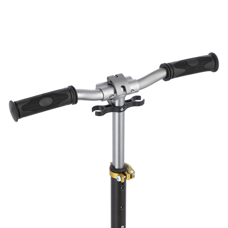 Der Roller wurde aus Aluminium hergestellt, daher ist er sehr leicht und widerstandsfähig. Dies ermöglicht es Ihnen, diesen Roller lange Zeit zu benutzen. Mit dem geringen Gewicht wird der Transport sehr einfach. Außerdem verfügt der Roller auch über einen Klappmechanismus.