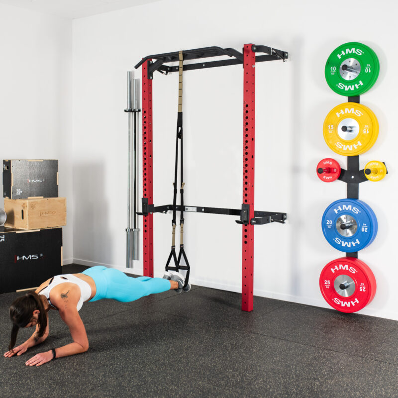 Wall Rack KLT23 wird für Stabilität und Sicherheit an der Wand befestigt. Wenn er nicht gebraucht wird, kann man ihn leicht zusammenklappen, so dass er nicht viel Platz beansprucht. Dies ist ein großer Vorteil dieses Geräts, da es auch von Personen mit begrenztem Trainingsraum verwendet werden kann. Wenn das Produkt an seiner tiefsten Stelle zusammengeklappt ist, nimmt er nur 31 cm von der Wand ein! KLT23 von der Marke HMS ist eine robuste Konstruktion, mit der Sie eine breite Palette von Übungen durchführen können.