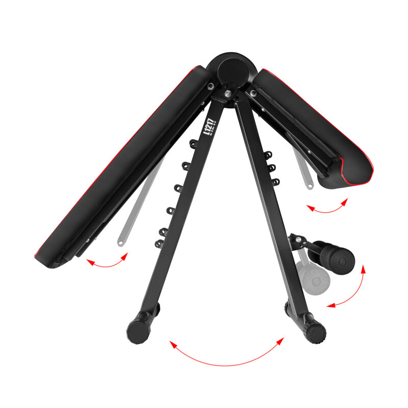 Die Trainingsbank wurde mit Blick auf die Benutzerfreundlichkeit entwickelt. Sie ist mit Transportrollen ausgestattet, sodass sie sich leicht bewegen lässt, und durch die Möglichkeit, sie zusammenzuklappen, kann das Gerät platzsparend verstaut werden. Dies ist ideal für diejenigen, die zu Hause trainieren, wo der Platz oft begrenzt ist.