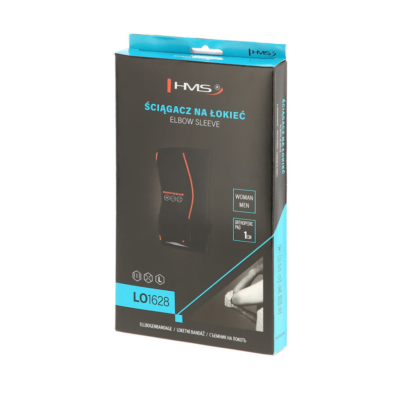 Die Ellenbogenbandage LO1628 HMS wurde aus atmungsaktivem und feuchtigkeitsableitendem Material hergestellt. Sie verursacht keine Schürfwunden und Unwohlsein während der Benutzung. Die Ellenbogenbandage kann man bei Schmerzen, leichten Entzündungen oder prophylaktisch als Unterstützung und Schutz des Ellenbogengelenks während der Trainings tragen.