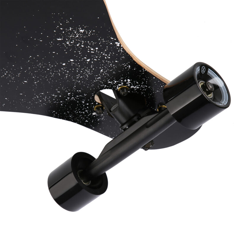 Das LONGBOARD SKULL WOOD von Nils Extreme ist ein Skateboard für Freizeitfahrten für Kinder und Jugendliche auf befestigten Flächen sowie zum Ausführen von technischen Tricks in Skateparks und auf Rampen. Das LONGBOARD SKULL von Nils Extreme hat Aluminium-Trucks mit einer Breite von 7 Zoll, die eine präzise Kontrolle über die Richtung ermöglichen, und PU-Räder mit den Maßen 60 x 45mm und einer Härte von 85A bieten ausgezeichneten Grip und absorbieren Stöße, was beim Fahren auf verschiedenen Oberflächen essentiell ist. Die Verwendung von 9-lagigem kanadischem Ahornsperrholz sorgt für hohe Haltbarkeit und Langlebigkeit. Die ABEC 7 Carbon Lager garantieren ausgezeichnete Fahreigenschaften und Geschwindigkeit. Das Skateboard ist mit Polyurethan-Rädern ausgestattet. Dies ist eine Verstärkung von Kautschuk (also eine Kombination aus Gummi mit diesem starken Material) mit einem noch stärkeren Material. Das Produkt ist für Personen jeden Alters geeignet, jedoch nicht für Tricks und Grinds.