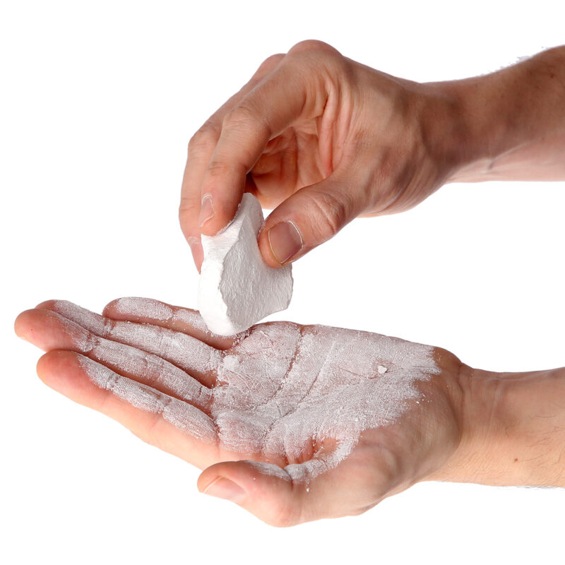 MGN03 HMS PREMIUM Magnesia in Brocken zeichnet sich durch sehr einfache Anwendung aus. Es reicht nur dieses Produkt auf die Handflächen zu schütten und sie leicht gegeneinander zu reiben.