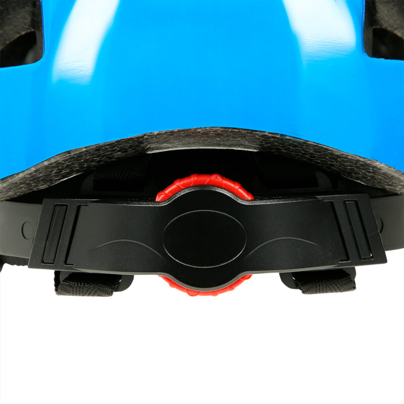 Der Helm ist in unterschiedlichen Größen erhältlich, aber verfügt auch über ein System, das eine ideale Anpassung ermöglicht. Dies erreichen Sie durch den Drehverschluss auf der hinteren Seite dieses Helmes. Das Kinnband mit dem Gurtbandverteiler trägt zur Verhinderung des Rutschens bei. Das schnelle Abnehmen des Helmes stellt auch dadurch kein Problem dar.