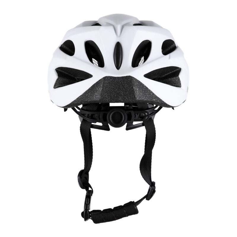 Der Helm ist in unterschiedlichen Größen erhältlich, aber verfügt auch über ein System, das eine ideale Anpassung ermöglicht. Dies erreichen Sie durch den Drehverschluss auf der hinteren Seite dieses Helmes. Das Kinnband mit dem Gurtbandverteiler trägt zur Verhinderung des Rutschens bei. Das schnelle Abnehmen des Helmes stellt auch dadurch kein Problem dar.