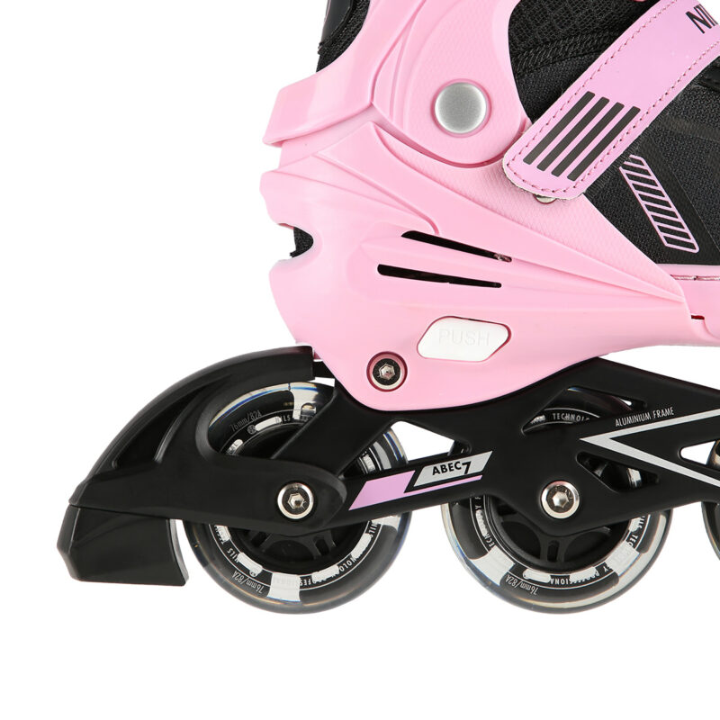 Der leichte und robuste Schuh sorgt für Sicherheit bei der Benutzung. Das Air-Vent-System des Schuhs beeinflusst direkt den Tragekomfort. Das Modell ist mit der 4-stufigen Größenverstellung ausgestattet. Dadurch können Sie einfach und schnell die Größe anpassen. Es ist auch erwähnenswert, dass das Modell NA11230A mit Alu-Schiene und Lagern der Klasse ABEC7 ausgestattet ist. Dies ermöglicht einen geringeren Widerstand des Drehverlaufs, d.h. eine schnellere Fahrt. Die hintere Bremse gewährleistet hingegen die Sicherheit.