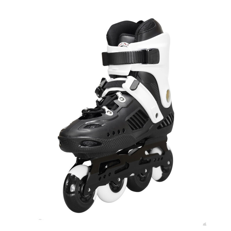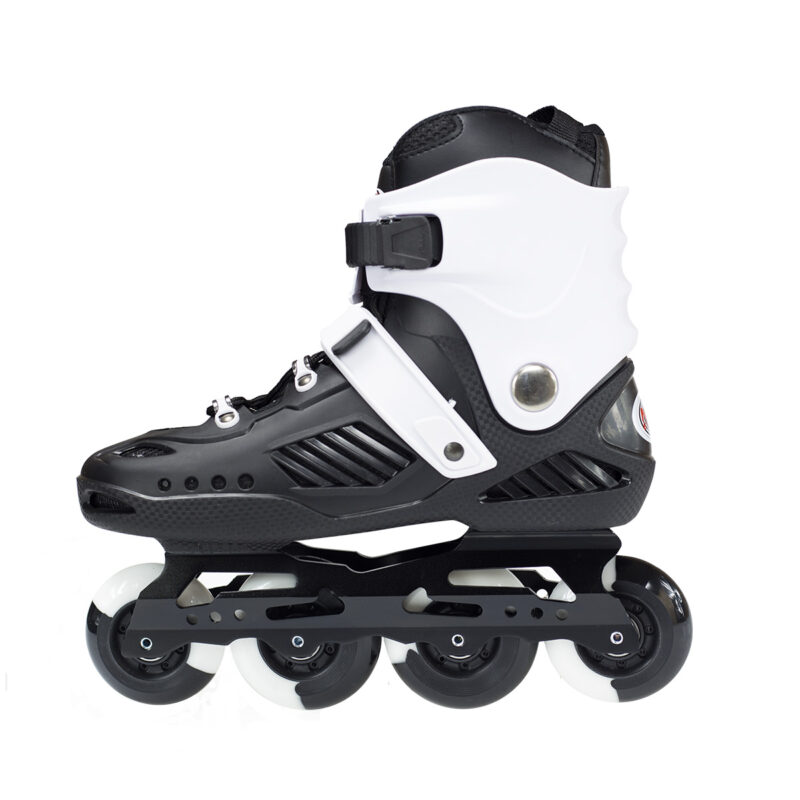 Ihre Konstruktion besteht aus dem leichten und ventilierten Schuh sowie aus der speziellen einteiligen und zusätzlich verstärkten Schiene aus Aluminium. Die hohe Qualität des Drehverlaufs gewährleisten die Lager der Klasse ABEC 9. Die weichen Rollen sorgen für die Bodenhaftung und absorbieren alle Vibrationen. Ihre spezifische Konfiguration bildet einen Faktor der besseren Wendigkeit. Zwei mittlere Rollen sind größer, was bessere Kontrolle während der Fahrt gewährleistet. Das Verschlusssystem besteht aus der zweiteiligen Verschlussschnalle aus Aluminium mit dem Spannmechanismus und aus der Schnürung. Dadurch können Sie die Schuhe an die gewünschte Größe anpassen. Auf der Außenseite des Schuhs befindet sich Slider als Element, das häufig bei Freeride-Fahrten benutzt wird.
