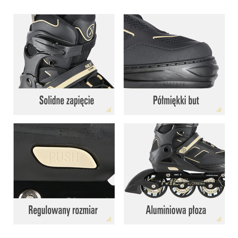 Die Inliner NA14174 Nils Extreme sind für Anfänger und Liebhaber von Inlineskating mit Vorkenntnissen bestimmt. Sie bilden eine Verbindung zwischen der interessanten Musterart und der hochwertigen Herstellung. Dies gewährleistet den hohen Tragekomfort.