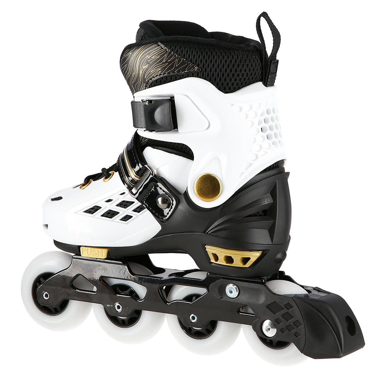 Die weichen Rollen sorgen für gute Bodenhaftung und absorbieren alle Vibrationen. Die Lager der Klasse ABEC7 gewährleisten die hohe Qualität des Drehverlaufs. Das Verschlusssystem, d.h. zweiteilige Verschlussschnalle, Klettverschluss und Schnürung, sorgt für Ihre maximale Sicherheit während der Fahrt. Die Bremse wurde aus dem hochwertigstem PP hergestellt. Dieser Stoff ist schlagfest und ermöglicht das sichere Anhalten, sogar bei relativ hohen Geschwindigkeiten.