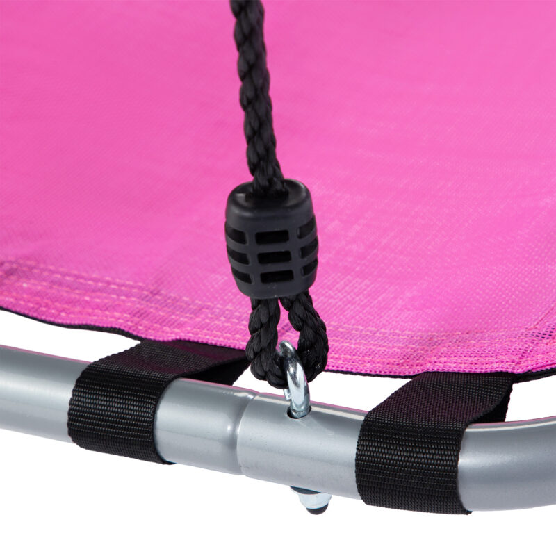 Der Rahmen besteht aus langlebigem Stahl mit einem Durchmesser von 25 mm und einer Dicke von 1,4 mm, was die Stabilität und Langlebigkeit der gesamten Struktur gewährleistet. Die 180 cm langen und 1 cm dicken Seile ermöglichen eine schnelle Montage der Schaukel an Bäumen, Rahmen oder anderen Strukturelementen. Die maximale Tragfähigkeit von 150 kg gewährleistet eine sichere Nutzung für Kinder und Erwachsene.