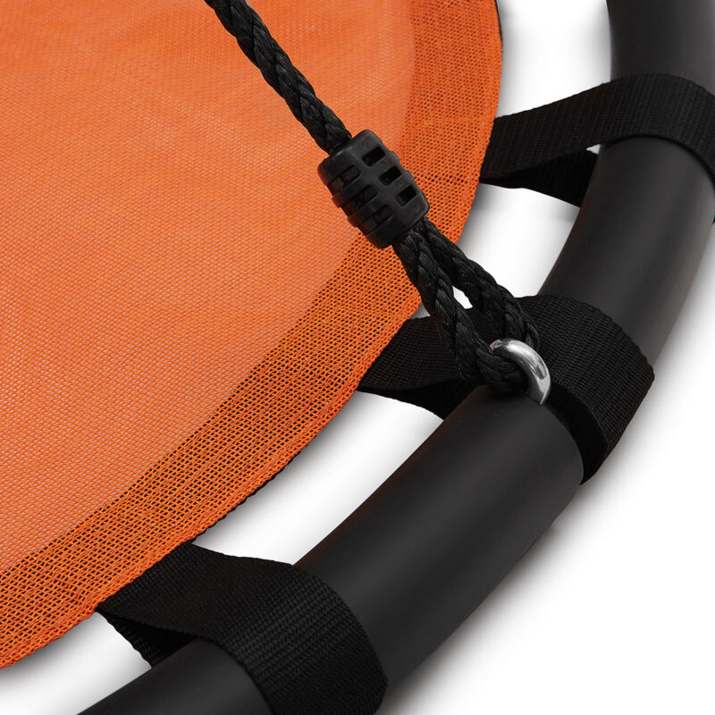 Ideal eignet es sich zum Aufhängen im Garten, auf der Terrasse oder auf dem Balkon. Bei schlechtem Wetter kann es auch im Haus aufgehängt werden. Die Montage ist sehr einfach. In wenigen Augenblicken werden Sie spielbereit. Die Nestschaukel hat eine runde Sitzfläche mit einem Durchmesser von bis zu 100 cm, die mehr Platz als nur für einen Liebhaber des Schaukelns bietet. Das ist zweifellos ein Vorteil, weil wir alle wissen, dass das Spiel in der Gesellschaft mehr Spaß macht. Mit der Möglichkeit, die Länge der Aufhängeseile zu verstellen, können Sie die Höhe an die Körpergröße eines Benutzers anpassen. In Verbindung mit der maximalen Belastung von 150 kg richtet sich dieses Produkt sowohl an kleine als auch an große Kinder. Für Kinder ist das großer Spaß und Spielerei, für Eltern bedeutet das Entspannung.