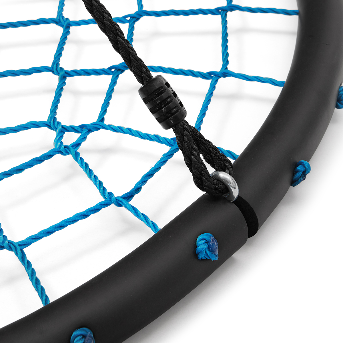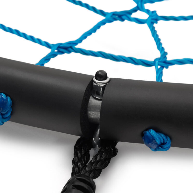 Die Sitzfläche besteht aus einem Netz der Seile und gibt Ihnen viele Spielmöglichkeiten sowie ist gleichzeitig bequem. Spaß kann dadurch stundenlang dauern. Die Aufhängeseile und die Seile der Sitzfläche bestehen aus sehr widerstandsfähigem Polyethylen. Der Rahmen wurde mit speziellem Schaumstoff gesichert. Alles wurde so konzipiert, um die Sicherheit zu maximieren. Außerdem sind die Stoffe dieser Nestschaukel widerstandsfähig gegen ungünstige Wetterbedingungen wie Regen oder Schnee. Daher ist es nicht nötig, die Nestschaukel zu verstecken, wenn es zu regnen beginnt.