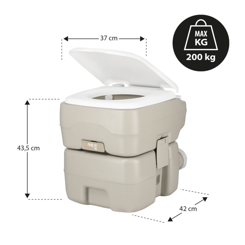 Der NC0024 hat keine separaten Behälter – er funktioniert wie eine Trockentoilette, in der Einweg-Hygienebeutel verwendet werden. Im Lieferumfang ist ein erster Satz enthalten, sodass Sie sofort mit der Verwendung beginnen können. Nach dem Gebrauch muss der Beutel einfach verschlossen und gemäß den Abfallvorschriften entsorgt werden. Dank dieser Lösung muss die Toilette nicht gespült oder geleert werden, was ihre Verwendung im Freien erheblich erleichtert.