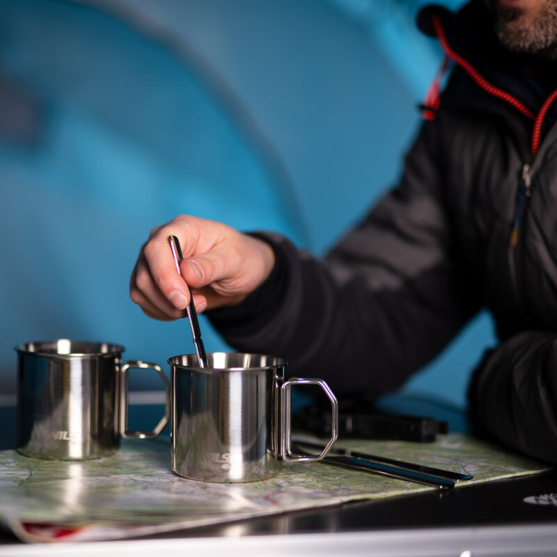 Das Set enthält vier Becher, von denen jeder nur 80 Gramm wiegt, was sie leicht und einfach zu verpacken macht, ohne zusätzliches Gewicht. Zusätzlich haben die Becher praktische, faltbare Griffe, die nicht nur die Aufbewahrung und den Transport erleichtern, sondern auch die Benutzung selbst bei den aktivsten Abenteuern komfortabel machen. Faltbare Griffe sind eine Lösung, die dafür sorgt, dass diese Becher noch weniger Platz in Ihrem Rucksack einnehmen.