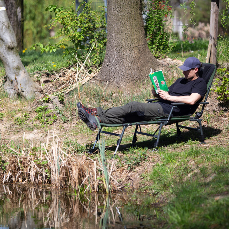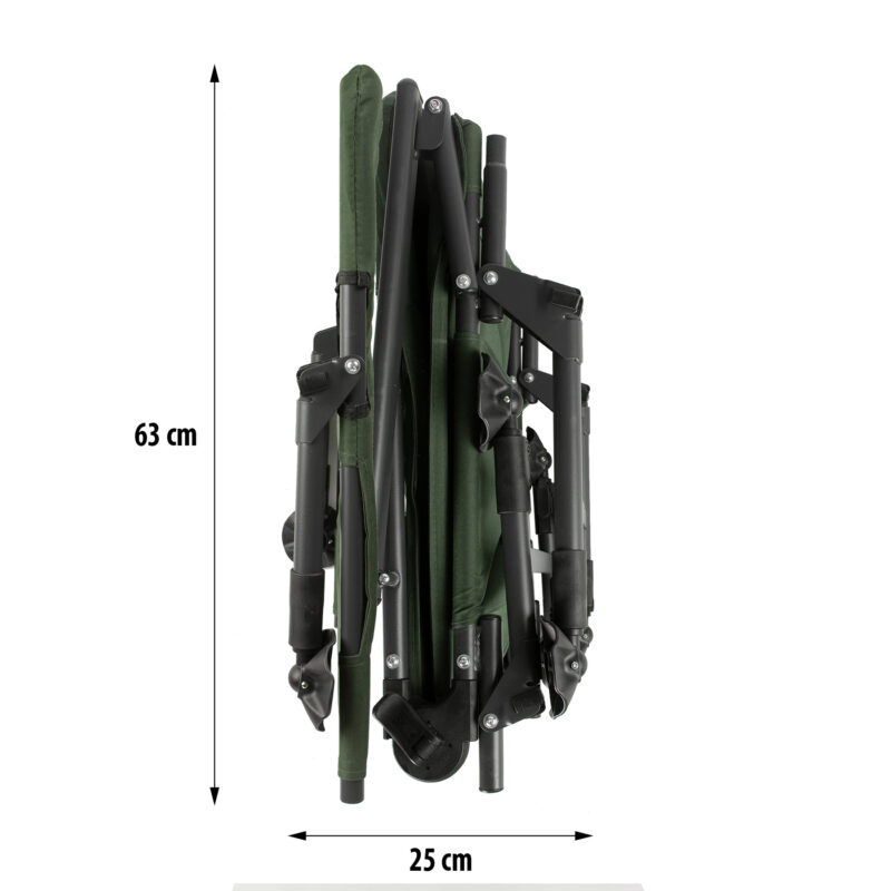Ein Rahmen aus soliden Stahlprofilen mit einem Durchmesser von 25 mm sorgt für Stabilität und Haltbarkeit bis zu 180 kg. Angler können diesem Stuhl voll vertrauen, wissend, dass er unabhängig von den Bedingungen oder der Nutzungsintensität über viele Saisons hinweg treu dienen wird. Zusätzlich erleichtert die einfache Faltbarkeit zu kompakten Größen den Transport und die Lagerung, was besonders auf Reisen wichtig ist.