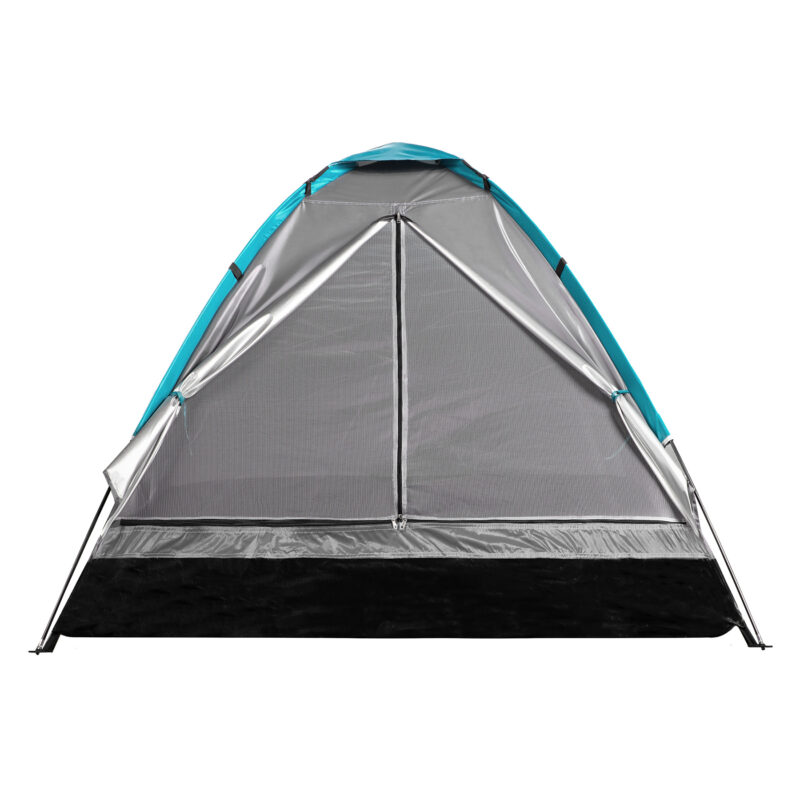 Die Zeltplane besteht aus strapazierfähigem 190T-Polyester mit einer PU-Beschichtung (Polyurethan), die eine Wassersäule von bis zu 2000 mm gewährleistet. Eine zusätzliche Silberbeschichtung schützt vor Sonneneinstrahlung und verhindert eine übermäßige Erwärmung des Innenraums. Der 100 g/m? Polyethylen-Boden isoliert effektiv gegen Feuchtigkeit und Kälte vom Boden.