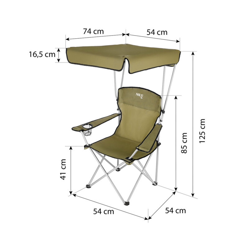 Der Campingstuhl mit Sonnenschutz NC3087 der Marke NILS CAMP wurde entwickelt, um maximalen Komfort während der Reise, beim Camping, Picknick und anderen Outdoor-Aktivitäten zu bieten. Ausgestattet mit einem abnehmbaren Sonnenschutz, bietet es sowohl einen bequemen Ruheplatz als auch Schutz vor der Sonne oder leichtem Regen.