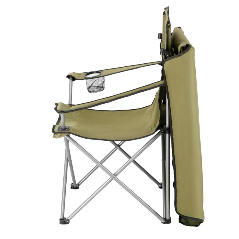 Dieser praktische Campingstuhl ist für jede Bedingung und jedes Gelände geeignet. Seine Stabilität wird durch stabile Stahlprofile mit einem Durchmesser von 16 mm gewährleistet. Dank der robusten Konstruktion und dem 600D Oxford-Material, das sehr langlebig ist, beträgt die zulässige Belastbarkeit des Stuhls bis zu 110 kg. Ergänzt wird dies durch rutschfeste Füße, die ein Verrutschen verhindern.